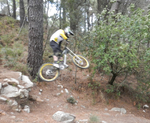 Aquí os dejo algunas fotos del corredor de Cannondale Jérôme Clémentz, especializado en enduro, que estuvo probando los senderos. Las fotos fueron tomadas por Poba, uno de los riders de los OjénBikers, principal organizador de esta carrera y quién les hizo de guía en todo el recorrido y en el refugio de Juanar.