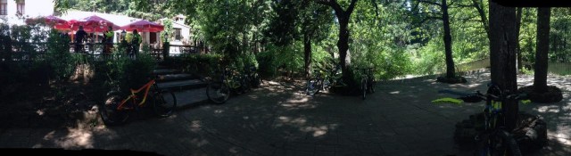 | descansando bajo la sombra en la acogedora terraza del Refugio de Juanar |
