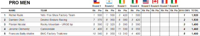 Volverán Richie Rude y Cecile Ravanel a arrasar como lo ha hecho en las carreras anteriores? La armada francesa plantará cara a Rude? Veremos que tal enfrentan esta carrera los españoles Toni Ferreiro y Iago Garay, actualmente en la posición 9 y 25 respectivamente. Refresquemos las posiciones en la general hasta ahora.