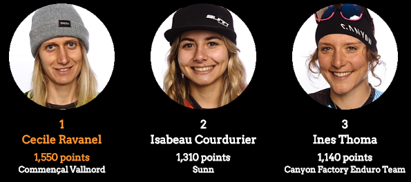 Volverán Richie Rude y Cecile Ravanel a arrasar como lo ha hecho en las carreras anteriores? La armada francesa plantará cara a Rude? Veremos que tal enfrentan esta carrera los españoles Toni Ferreiro y Iago Garay, actualmente en la posición 9 y 25 respectivamente. Refresquemos las posiciones en la general hasta ahora.
