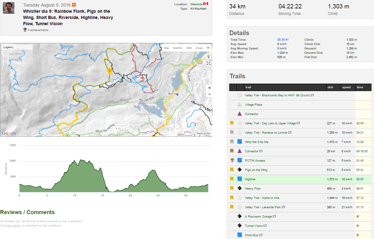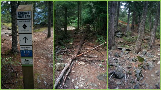 Bueno, ayer fue un día fructífero, pero largo y duro. La idea inicialmente era llegar hasta la zona donde están los 2 senderos que forman el tramo 4 de la Enduro World Series de este finde, que son Pigs on The Wing y Short Bus. Para esto tendría que salir de casa y por las vias cicloturísticas hacer unos 6km llegar hasta la base de Westside, la zona en que la la semana pasada hicimos varias rutas de enduro. Desde allí tocó tirar de molinillo y con paciencia subir y mantener cota por el Rainbow Flank trail hasta la cabecera del Pigs On the Wing. Vaya con esta subidita, comienzas con Whip Me Snip Me que ya te deja en tú sitio y a partir de allí vas cogiendo altitud hasta llegar a los mil metros. Durante unos 4km es un terreno muy chulo, cresteando y dejando entradas de bajadas a la izq, la mayoría negras, Korova Milk Bar, Industrial Disease, Pura Vida, High Society, Legalize It, todos senderos de uno o dos rombos negros.