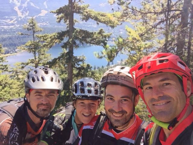 | caras de felicidad en el paraíso, al fondo Alta Lake y Whistler bikepark |