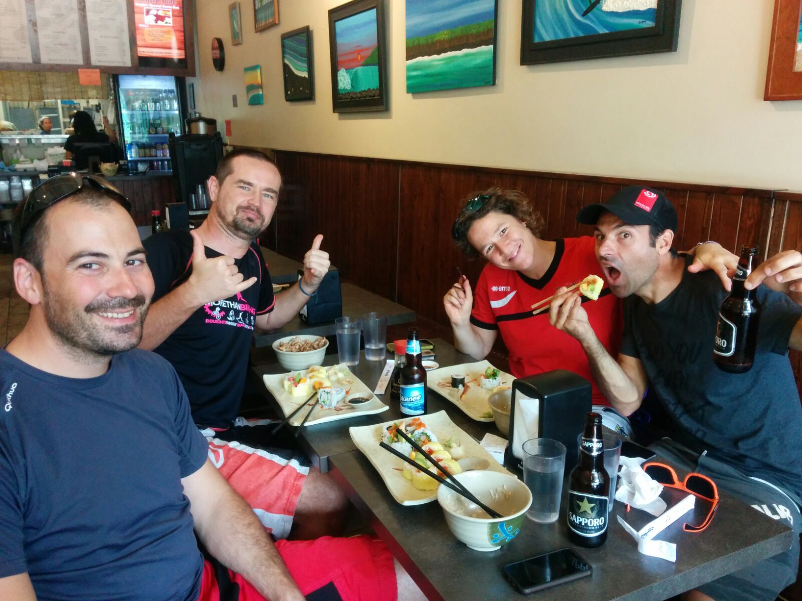 Al final aprovechamos para hacer una compra de comida en Squamish y ahorrarnos algo de dinero, esta vez ha salido a unos 45CAD por cabeza y hemos notado la diferencia en la cantidad de productos que hemos comprado, yo espero no tener que volver a comprar nada más hasta irme dentro de 9 días. Para finalizar la jornada Chus nos recomendó un pequeño restaurante asiático con muy buenos precios y calidad de la comida. Como véis en la foto, hoy tocó sushi y un bowl de carne con arroz muy ricos.