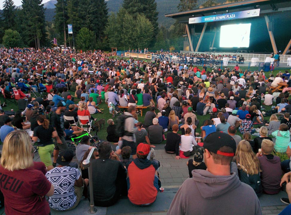 | Dirt Diaries, pase de videos de MTB en la plaza olímpica de Whistler |