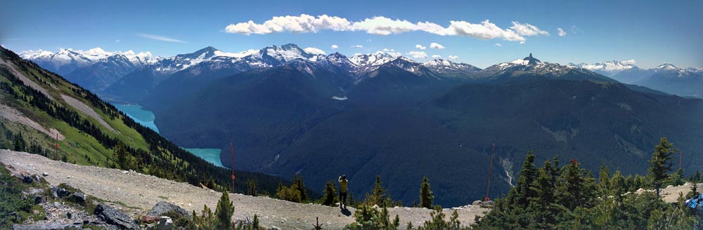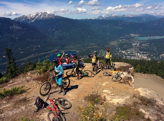 | la tropa al completo, al fondo Whistler Village, Alpha Lake y Green Lake |