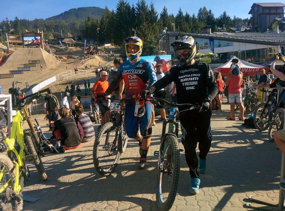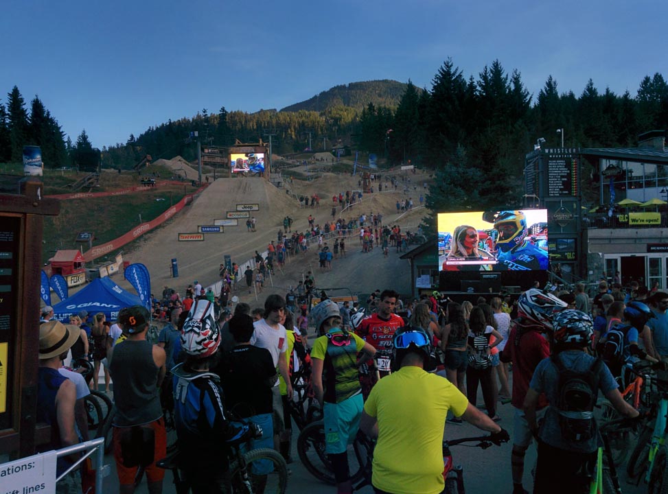 Terminado el test me voy a casita, almuerzo con calma y sobre las 6pm me voy al centro neurálgico del Crankworx en la góndola principal, donde se está corriendo la final del Dual Slalom by Giant. Como ayer con el pumptrack y el whip-off, montonazo de gente, un ambientazo espectacular y los corredores a tope. Ganó en el masculino el checo Tomas Slavik con Bernard Kerr pisándole los talones. En las féminas se repitió el duelo del día anterior del pumptrack, la estadounidense Jill Kinter y la holandesa Anneke Beerten, ganando nuevamente Jill Kinter y proclamándose la Reina del Crankworx.