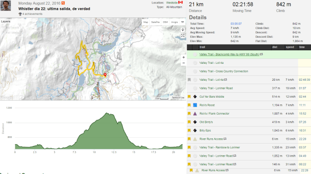 Y después de unos minutos y par de paradas para fotos y recuperar el aliento llegamos a la entrada de Billy Epic. Nos comenta Xicotet que fue una de los tramos cronometrados de la Enduro World Series aquí en Whistler del 2013. Es una rombo negra, con mucho desnivel y alguna zona revirada, pero en general se hace completa del tirón. Hay un par de pasos técnicos que pasé con dificultad pero que tienen “chicken line” así que sin problema. A medio sendero dimos paso a unos locales que iban bajando como un tiro, madre mía, se ve que se lo conocen al dedillo, la ventaja de ser locales claro.