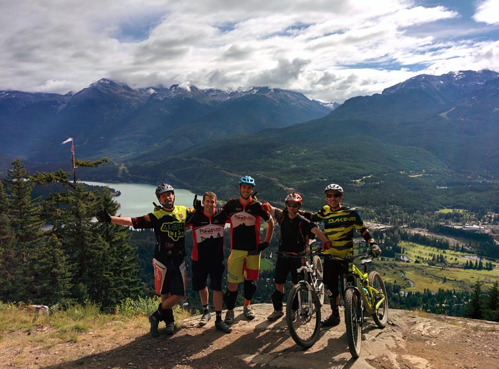 | de izq a der: el que suscribe, Victor, Xicotet, Alberto y David, muy buena compañía al fondo Green Lake, Lost Lake y parte de Blackcomb |
