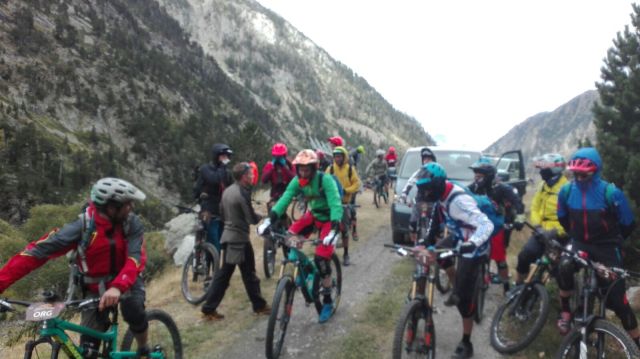Amanecimos nuevamente un poco nublado con algunos rayos de sol, desayunamos y nos preparamos para el día. Hoy tocan 50km y 1600m de desnivel acumulado, ascendiendo hasta nada más y nada menos que 2600m de altura, esperamos incluso encontrarnos algo de nieve, como así ha sido. Comenzaremos con un remonte mecánico y luego tocará un porteo no muy largo para finalizar haciendo los tramos de bajada hacia Castejón de Sos, donde terminaría la Trans-Nomad con una fiesta y cena por todo lo alto.