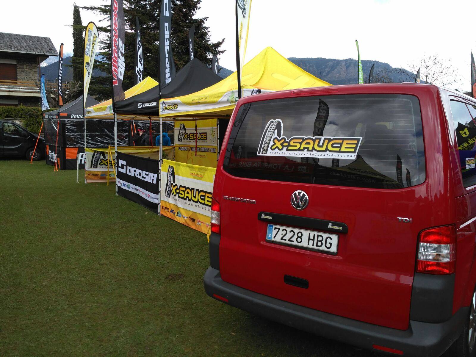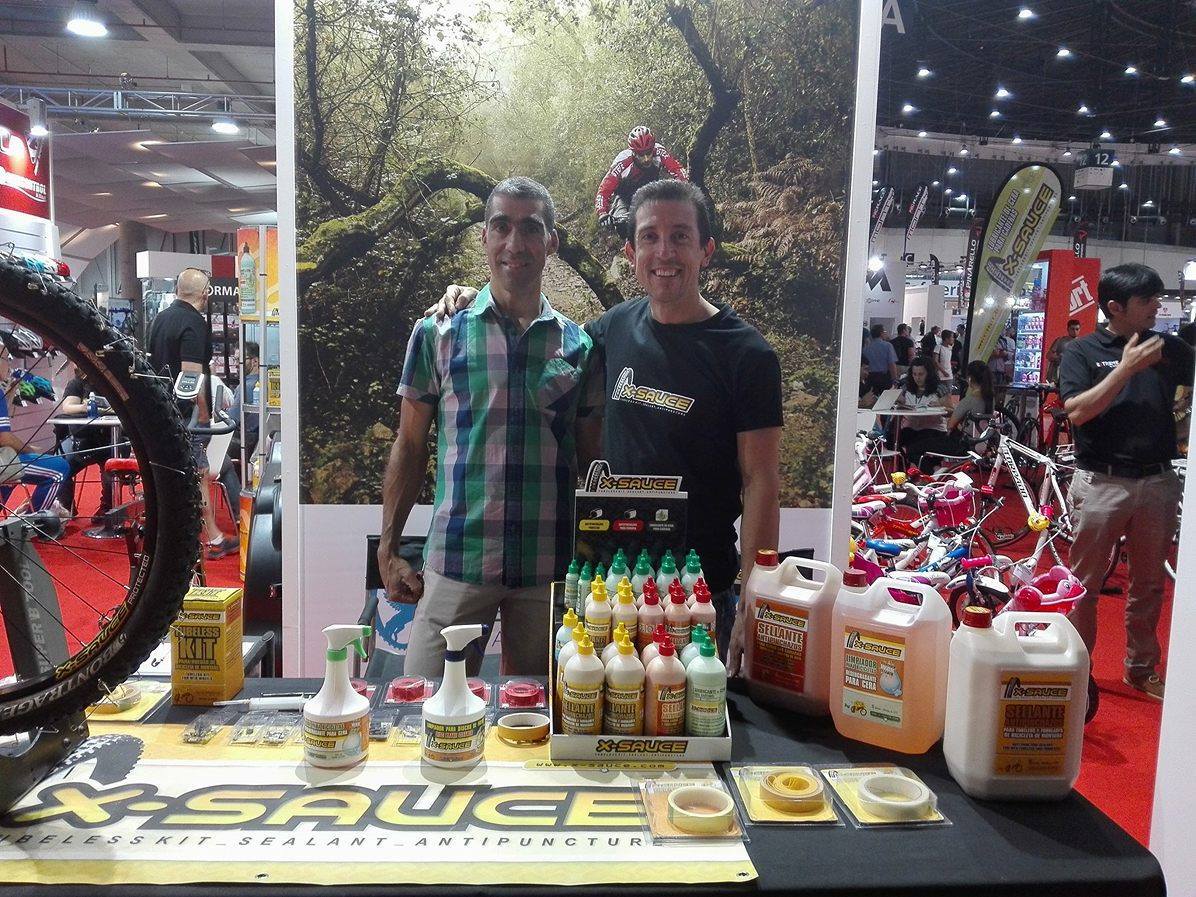 X-Sauce: Inicialmente desarrollé la forma de tubelizar y el líquido sellante para mí a título personal. Después hice una web para informar a la gente de cómo hacerlo, y después poco a poco, como la gente me pedía a través de la web el sellante, válvulas… para tubelizar pensé en venderlo de forma oficial por Internet. Un buen día pensé en ir a la feria Festibike para enseñarlo, porque por entonces la gente no conocía lo que era el tubeless y mucho menos tubelizar una rueda. Monté una pequeña carpa de 3×3 en zona exterior económicamente asequible y lejos de las grandes marcas; resultó que la gente me decía que tenía más público que las grandes marcas en los grandes stands. Poco a poco la gente y las tiendas comenzaron a conocerme y pedirme cada vez más, todo crecía despacio. Y cuando otras marcas de la competencia comenzaron a sacar sus kits de tubelizar y sus líquidos, yo creo que la gente pensó: “ese chico que nos explicaba que se podía tubelizar debía tener razón”, porque cuando creció mi competencia yo automáticamente también comencé a crecer más rápido. Así que como veis, todo fue despacio, a fuerza de tesón, trabajo e insistencia.