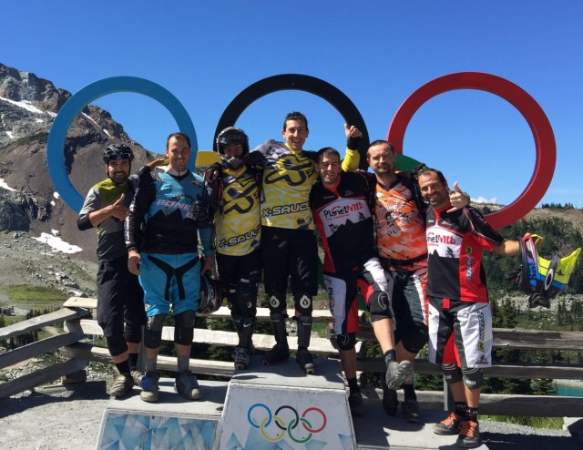 | David al centro disfrutando un estupendo día en Whistler con otros locos del MTB |