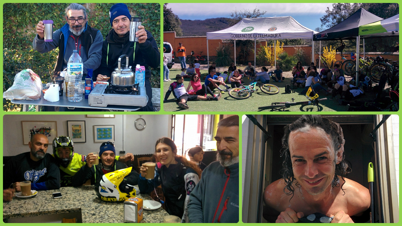 Después de varias horas de furgo desde Ojén con paradas intermedias a recoger a Miriam de Alhaurón y José Carlos de Osuna, llegamos a Montanchez hambrientos. Rápidamente dimos cuenta de los avituallamientos a mano y terminamos la noche en alguno de los bares del pueblo que para nuestro desconcierto cerraban a la tempranísima hora de la una de la mañana, el plan de borrachera total con los jóvenes integrantes del equipo SpainDH se iba al traste. Pero aún quedaban 2 días completos por delante, despacito y con buena letra conseguiríamos lo planeado.