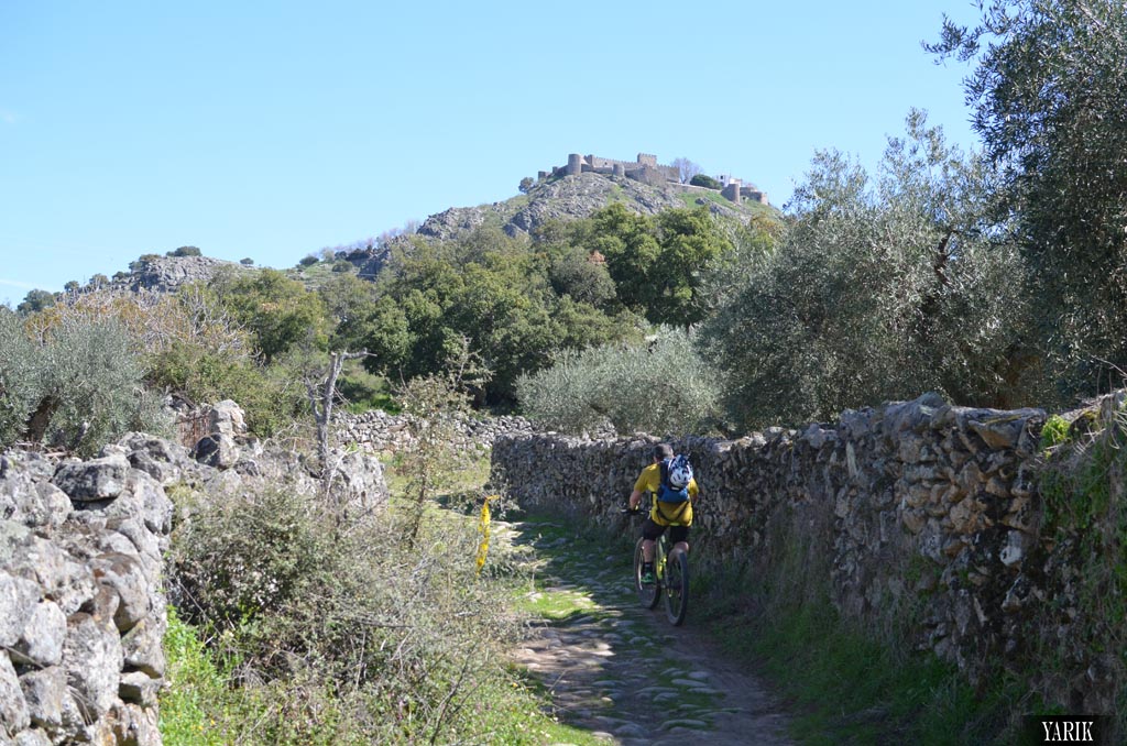 Enlace al tramo 3, largo pero casi todo por asfalto o cemento, con rampas duras pero que se hacen sin grandes dificultades, molinillo y pa’rriba. El tramo 3 es el rey y señor de los tramos, casi 5km de largo, en un terreno mayoritariamente pedrogoso, con solo un par de pasos técnicos pero con multitud de sitios donde por la velocidad que puede coger la bici una caída puede resultar muy fea. Raudo y veloces completamos este tramo, entre demoras varias, pinchazos, alguna rotura de cadena, etc, ya se nos hace tarde y las birras empiezan a calentarse. Finiquitado el tramo 3 y toca lo que será el trozo más odiado, el inefable enlace al tramo 4 que comienza en el castillo en lo alto del pueblo y para llegar a él hay que subir un buen rato por una de las calzadas romanas, sitio perfecto para destrozarte la espalda, lumbares y sacarte las pocas fuerzas que quedan.
