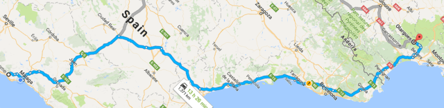 Bien, arrancamos, quedan casi 1400km y 14h de furgo por delante, con parada de por medio en Tarragona a recoger al rider riojano Carlos Sadaba al que he convencido a última hora de apuntarse a esta matada. Dicho y hecho, 10h del tirón me dejan en Tarragona, ya a medianoche, duermo unas horas y partimos para Olargues al mediodía depués de aprovechar para hacer un par de trámites en Barcelona (atentos a la