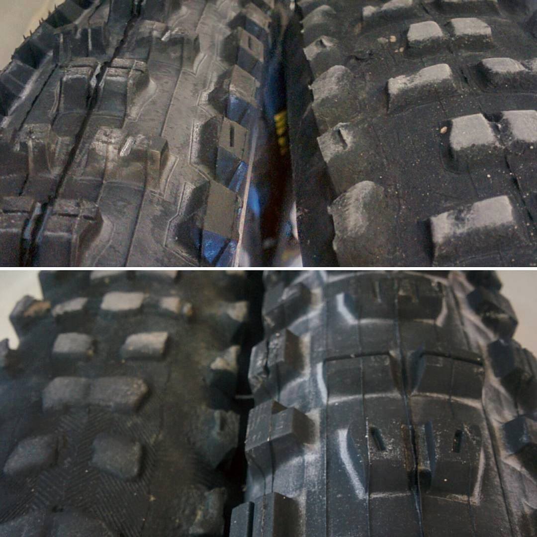 Lo primero es lo primero, serán unos 1400km desde Ojén hasta Olargues, en medio de la nada en el sur de Francia, más inscripción más combustible, vamos a evitar en la medida de lo posible que se nos joda toda la excursión por un pinchazo. Me bajo a AlohaBikes y cubiertas nuevas como toca. Detrás monto una Maxxis Minion DHR II Exo y delante una Maxxis High Roller II Exo, 27.5 por supuesto, hay que ir a la moda. En la foto se puede ver que detrás llevaba una Maxxis Agressor, muy contento, le metí unos 1500 km’s en 4 meses y me ha gustado mucho el comportamiento. Pero una Minion me da más confianza que quieres que te diga.