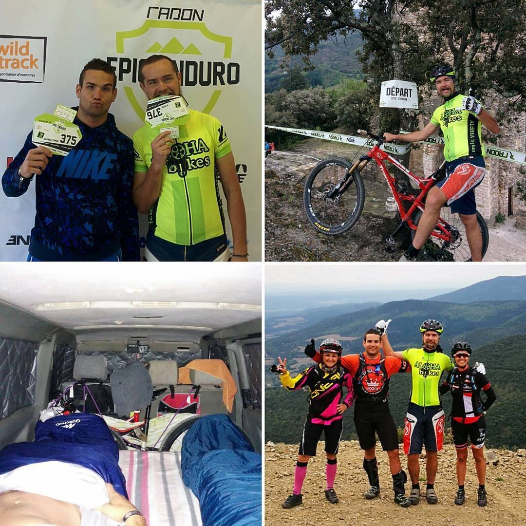 Olargues es un pequeño pueblo medieval, que ha ganado varias veces un concurso en Francia al pueblo medieval mejor conservado. Aparcamos lo más cerca posible del paddock y la zona donde tendrá lugar toda la movida y como ya es tarde rápidamente comemos y damos una vuelta por el pueblo en plan guiri (turista). Las calles estrechas y un campanario en lo más alto del pueblo nos hacen pensar “estaría muy bien un descenso urbano” y efectivamente, el último tramo de la carrera, el 10, será un tramo urbano, que al otro día ya estará marcado y podremos entrenar incluso. Se hace tarde, a dormir. El sábado el plan es entrenar alguno de los tramos, para estirar un poco las piernas y hacer un poco de reconocimiento del terreno. Yo me he tirado la semana completa sin tocar la bici, dejando reposar todo lo posible mi rodilla izquiera que la tengo tocada desde hace un tiempo.