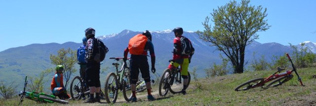 Con una sonrisa en plena cara nos toca la última bajada, así cargamos de nuevo las bicis y a por ella vamos. Esta será la bajada más técnica del día, con algunas zonas con mucho contraperalte y bastante desnivel, para mí las más complicadas. Antes de la bajada nos detenemos en un sitio al sol y sin aire y descansamos mientras nos comemos el sandwich, creo que es el momento más esperado del día, los sandwiches, son deliciosos.