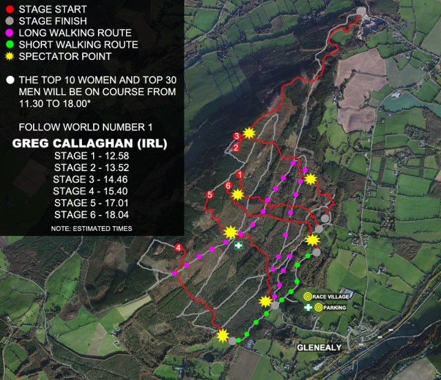 Sobre todo el rider y héroe local Greg Callaghan que ha ganado en las 2 ediciones anteriores de la carrera, si lo hiciera otro año más, no sabemos como reaccionarán sus compatriotas. Miren incluso en el mapa que tienen en la web con los detalles de como ir a los diferentes puntos “calientes” para los espectadores, como remarcan los tiempos de salida en cada tramo para Callaghan. Será todo un show.