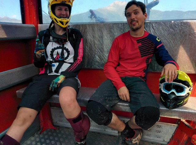 El viernes tocó recoger los dorsales y hacer las verificaciones pertinentes. Nuestro amigo y corredor Jose “Mascota” Espinosa se quedaría una semana más para participar en el mundial mastér de descenso, por lo que tuvo que gestionar algún que otro papeleo extra. Hecho esto, tiramos hasta arriba del todo, al pic Cubil, para hacer nuestra primera bajada de entreno. La zona superior aún no estaba del todo bien marcada, pero no era lo más grave, pues aquí no se complica mucho la trazada, ya sabemos que el inicio son varias curvas seguidas para obligar a hacer un trenecito y que la gente ocupe su lugar para luego ir adelantando según cada uno pueda.