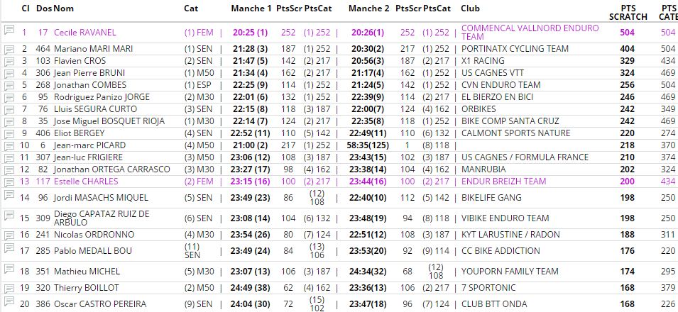 El Top20 Challenger, con Cecile Ravanel sacándole más de 1min al siguiente clasificado, el ibizenco Mariano Mari que hizo un bajadón.