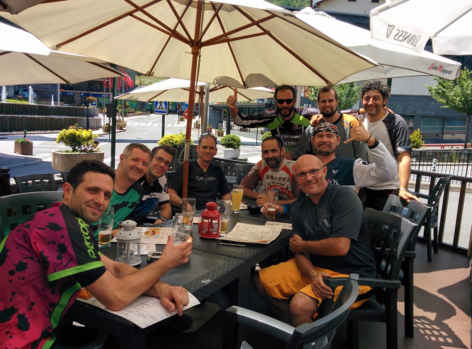 Entre bajada y bajada por supuesto compartí unas buenas birras con mis amigos de Mallorca, con los que tantos años de ruta he compartido. También compartimos una maxi o dos hace años, por lo que hay muchas historias para contar entre todos. Varios clasificaron para bajar en el grupo Challenger por lo que compartimos bajada incluso, para desgracia de alguno…jajaja!!!