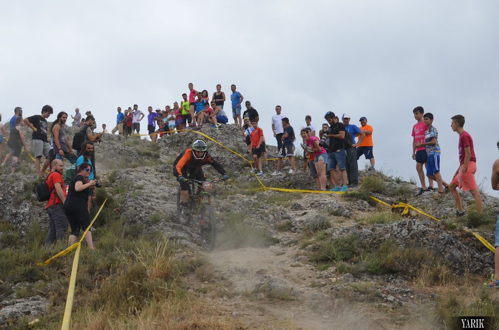 Del TC4 toca enlace por el Calvario hasta el TC5 y final de carrera, donde el público era aún más nutrido y los gritos se oían hasta el otro lado del barranco, desde el TC4 se les podía oír. Esta bajada no tenía mucha complicación, pero el terreno seco y suelto daba un extra de peligrosidad, podías coger mucha velocidad y luego al parar para enfrentar la zona más radical podías tener un susto…. o podías no frenar, como hicieron algunos y simplemente volar por las piedras….jajajaja!!
