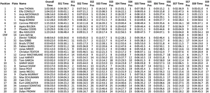 Las distancias que han hecho cada día no son nada del otro mundo. El primer día solo 18km con +1160m y -1160m, con 2 tramos cronometrados. El 1ro 3.5km -448m y el 2do 1.2km -296m. El segundo día tuvieron algo más de distancia pero casi el mismo desnivel, 35km con 1126m de subida y 1580m de bajada. Cuatro tramos este 2do día, 4.2km -471m, 3.6km -370m, 1.7km -259m y 1.5km con -212m. El tercer y último día tocaba el helicóptero que fue cancelado finalmente pero igualmente se hizo uso de remonte mecánico para tener al final solo 15km con 498m de subida y 1450m de bajada, repartidos en 3 tramos de 2.9km, 3.2km y 1.6km, con 360, (atento!) 816!! y 144 metros de bajada. Ese 2do tramo fue el más esperado de la carrera, 800 y tantos metros de bajada con remonte mecánico, el tiempo estimado por la organización fue de unos 12min para el más rápido.