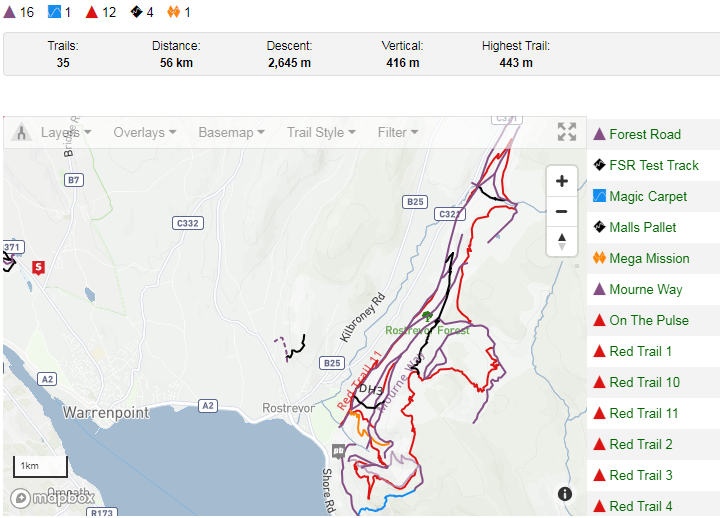 Pasé un día completo en Rostrevor, hicimos 2 bucles por la mañana y luego de una parada para almorzar en el camping me hice otro bucle por mi cuenta para probar otros senderos que me recomendó Glyn. La carrera de la Vitus First Track Cup será aquí en Junio, tiene que ser espectacular. Este finde será en Ravensdale, otro trail center no muy lejos de Rostrevor, justo antes de cruzar la frontera, tendrás un reportaje por supuesto de esta carrera el próximo lunes.