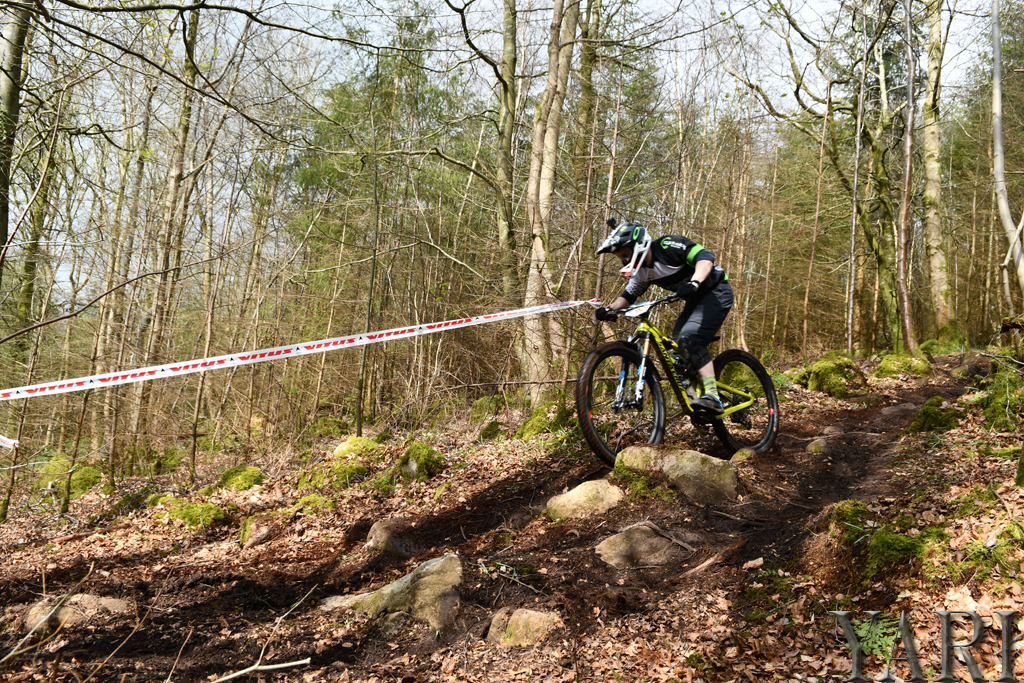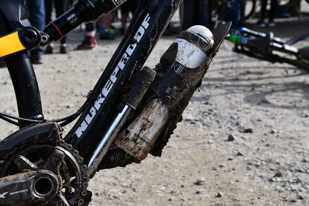 Como había comentado en la entrada anterior con los entrenos, el domingo amaneció soleado y el terreno casi ideal. Los tramos 1 y 2 aún tenían algo de barro y zonas un poco atascadas, pero nada como el sábado donde el barro fue la nota del día. Durante el avance de la carrera se fue secando poco a poco y ya al mediodía, cuando bajaban los top30 el terreno era una maravilla, sobre todo los tramos 3 y 4 con un grip perfecto. Así y todo, las raíces y piedras estaban muy embarradas y había que ir con cuidado pues más de uno tuvo algún susto con ellas.
