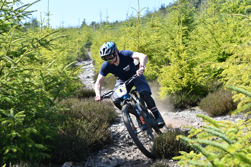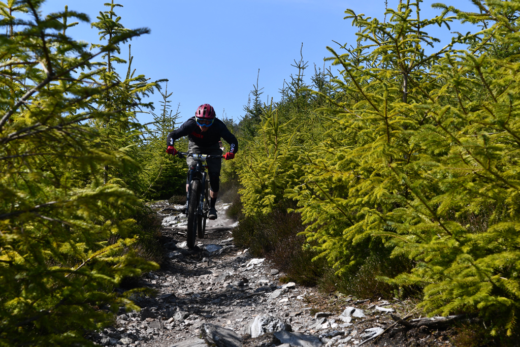 En general todas las bajadas fueron muy físicas, no hay mucho desnivel aquí. A pesar de la corta longitud de los tramos, siendo el más largo el 3ro con 2km solamente, los tiempos de bajada son largos, en este tramo en particular Greg Callaghan hizo 5:25.91. Los tramos 1, 3 y 5 comenzaban todos casi uno junto al otro, en la misma vertiente de la montaña, dentro de bosque con mucho pedaleo atascado en zonas muy reviradas. El 1 y el 2 en general muy similares, casi todo plagado de raíces, vale mucho la técnica más que el agarrarse al manillar y dejarse llevar. Los tramos 3 y 5 si que tenían una zona de piedras muy rápidas en la zona media, más parecido a lo que estamos acostumbrados en el Sur de España. Aquí varios corredores importantes tuvieron pinchazos y perdieron su habitual posición en el top20.