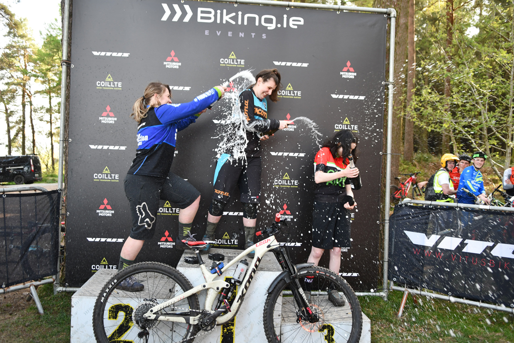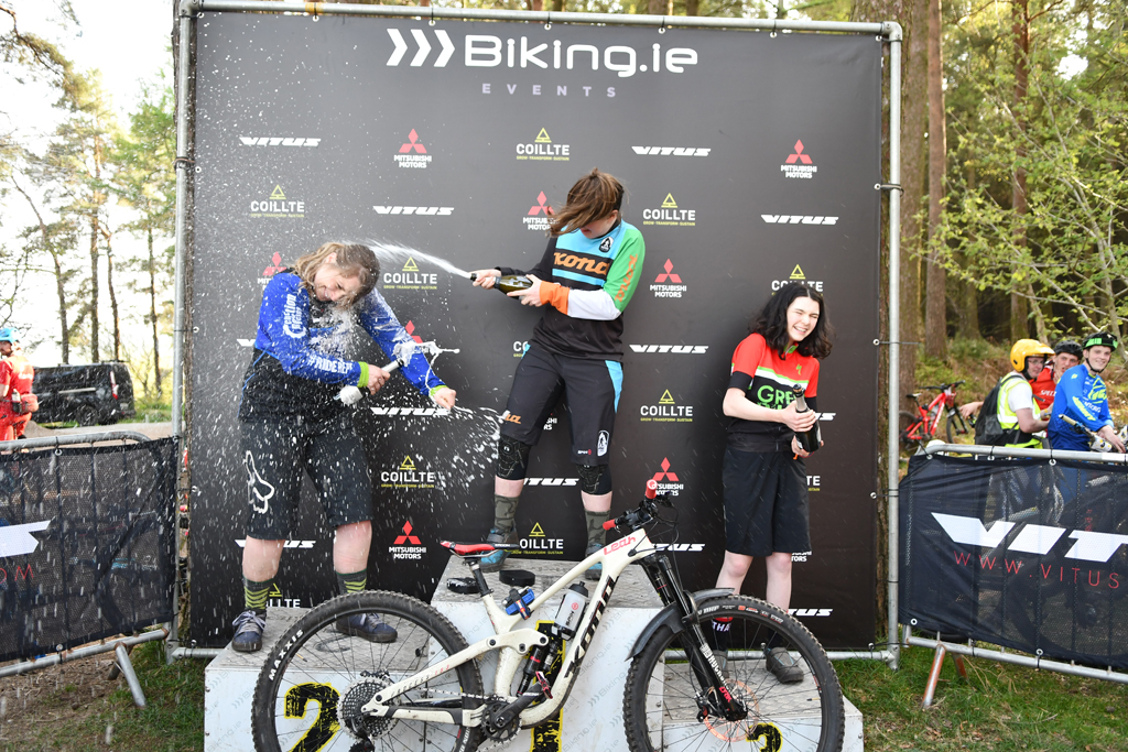 En chicas la corredora de Kona Leah Maunsell no dejó oportunidad ninguna a las demás, ganando con autoridad cada tramo. Segunda Janna Harvey del ChainReaction Cycles Belfast a 50sec que hizo lo mismo en los 5 tramos, quedando 2da en todos. Tercera Hanna Mullin de Green Bikes/TrailDemos, a una diferencia apreciable de 3min de Leah.