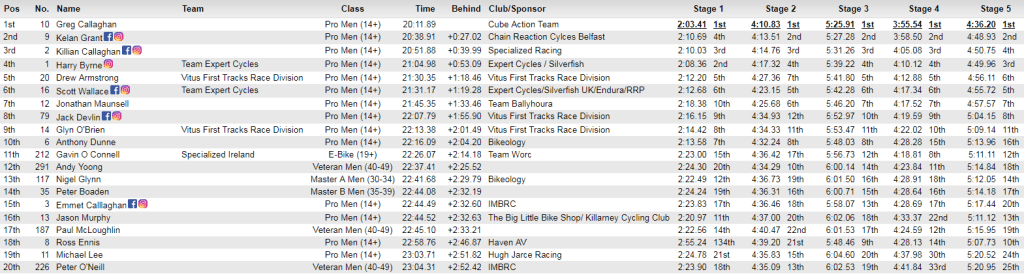| 3rd. Killian Greg Callaghan | 20:51.88 | +0:39.99 | 3rd. Hannah Mullin | 29:03.68 | +3:03.83 |