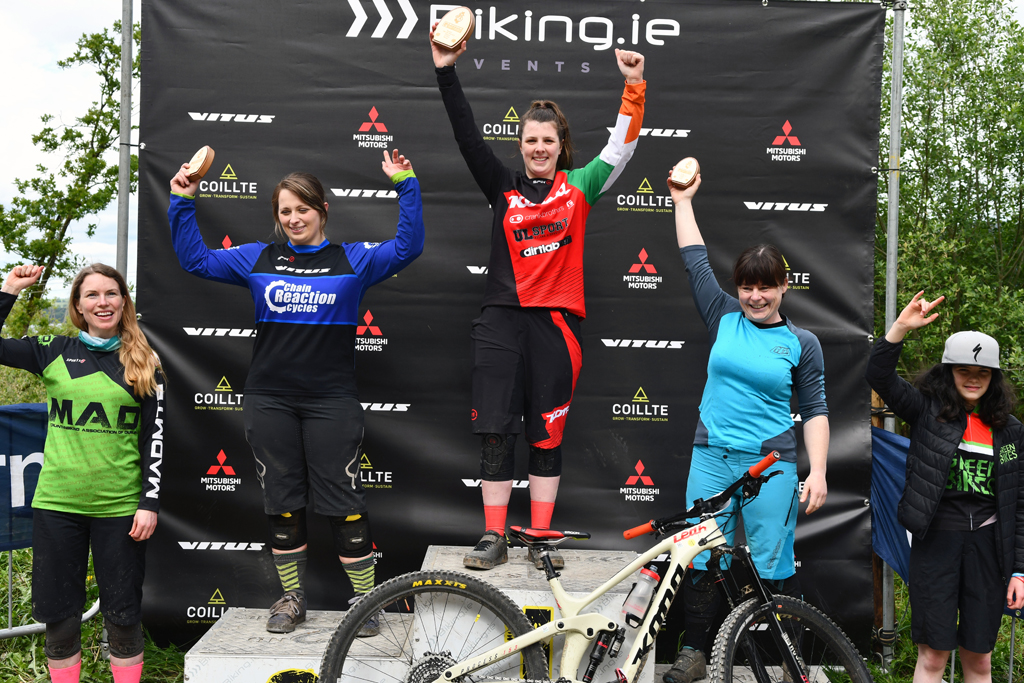 En chicas se presentó Leah Maunsell (Kona), recién llegada de la EWS Madeira donde ganó en U21. Como viene siendo la norma, demostró una superioridad aplastante, ganando todos los tramos y la general con 31s de ventaja sobre Hanna Harvey (Chainreaction Belfast). El joven rider Ronan Dunne (Biking.ie) ganó claramente 4 tramos de 5, dando poca oportunidad a sus inmediatos perseguidores. Harry Byrne (Expert Cycles) quedó segundo y fue el único que pudo arrebatarle un tramo a Ronan. Jonathan Maunsell, hermano de Leah, luchó por el 2do puesto del podio pero una 6ta posición en el último tramo le dejó en el 3er lugar.