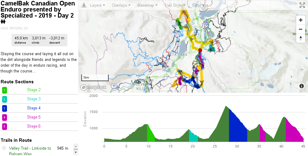 El 2do día tendrán 45km con 3013m de subida y 3012m de bajada repartidos en 5 tramos. Para subir al TC3 y al TC5 usarán telesillas, el resto todo a pedales. Los tramos 4 y 6 serán decisivos el domingo, con 4km cada uno y 719m y 634m de bajada respectivamente.