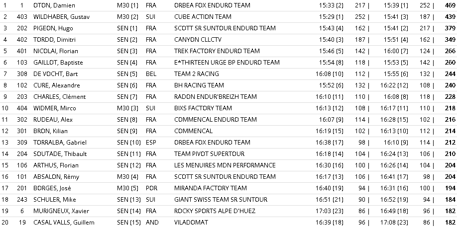 Como siempre, especialistas de este tipo de carrera y en general corredores de enduro de alto nivel participaron en ella. El top20 de la general estuvo plagado de franceses, lo que es de esperar porque la carrera se hace en Francia y con las limitaciones de viajes actuales es normal. Pero aún así, es normal ver muchos de esos nombres siempre entre los mejores.