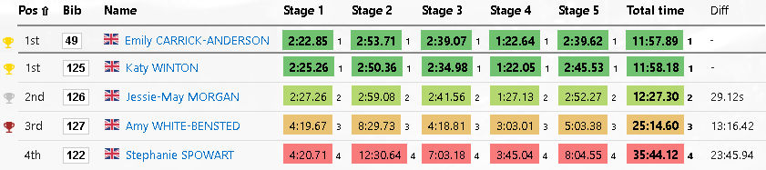 En cuanto a los resultados de carrera, en chicas una sub23 fue la ganadora de la general, logró sacarle medio segundo a Katy Winton que fue la ganadora élite y 2da de la general. La 3ra de la genera, 2da élite es otra chica que seguramente este año veremos en alguna carrera de la EWS, Jessie-May Morgan, que llegó casi 30s detrás de Katy.