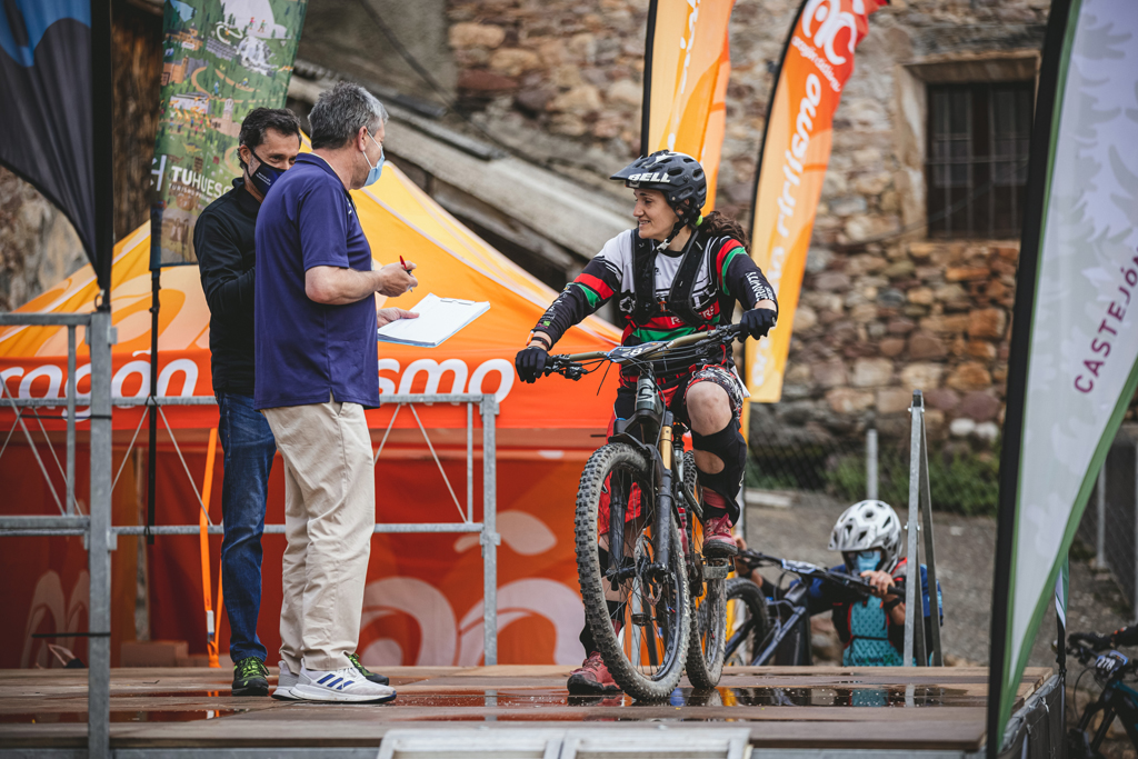 Acabado el TC1 y parecía que la lluvia no había hecho tanto daño, una caída aquí y allá pero sin consecuencias, a por el TC2. En este punto aún los corredores iban bastante agrupados y debido al formato de carrera en el que no había un orden pre-establecido de salida en cada tramo, se juntaban categorías y edades. Un formato que gustó a muchos porque te deja tiempo para manejarte y administrar tu tiempo en los enlaces pero que a la vez con tanto corredor junto provocó momentos de “dame un minuto que soy lento” o “tirate tú que espero a mi compi” y como no el que llega y quiere bajar antes que todos porque es el campeón de su barrio y luego no veas el tapón que hace al resto. Pero bueno, al lío, TC2. Sara Yusto vuelve a ganar pero ojo, con una Marketa Michalkova a solo 13 centésimas de segundo y Anja Hovorka a 53 centésimas. Tramo que todos predecían rápido y así fue como atestiguan los tiempos de los tramos.