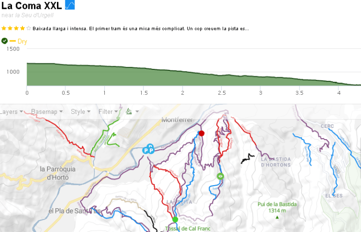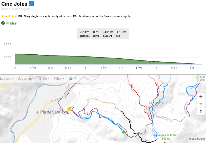 Entiendo por los comentarios que el primer sendero que hacen es el llamado “Cinc Jotes“. En el segundo video hacen una que comentan que son unos 10min de bajada, mirando el mapa en Trailforks veo una que se llama La Coma XXL de 4.4km y 500m de bajada, imagino que será esa. En la descripción del sendero además pone que se usa habitualmente en la carrera de la Super Enduro Arfa.