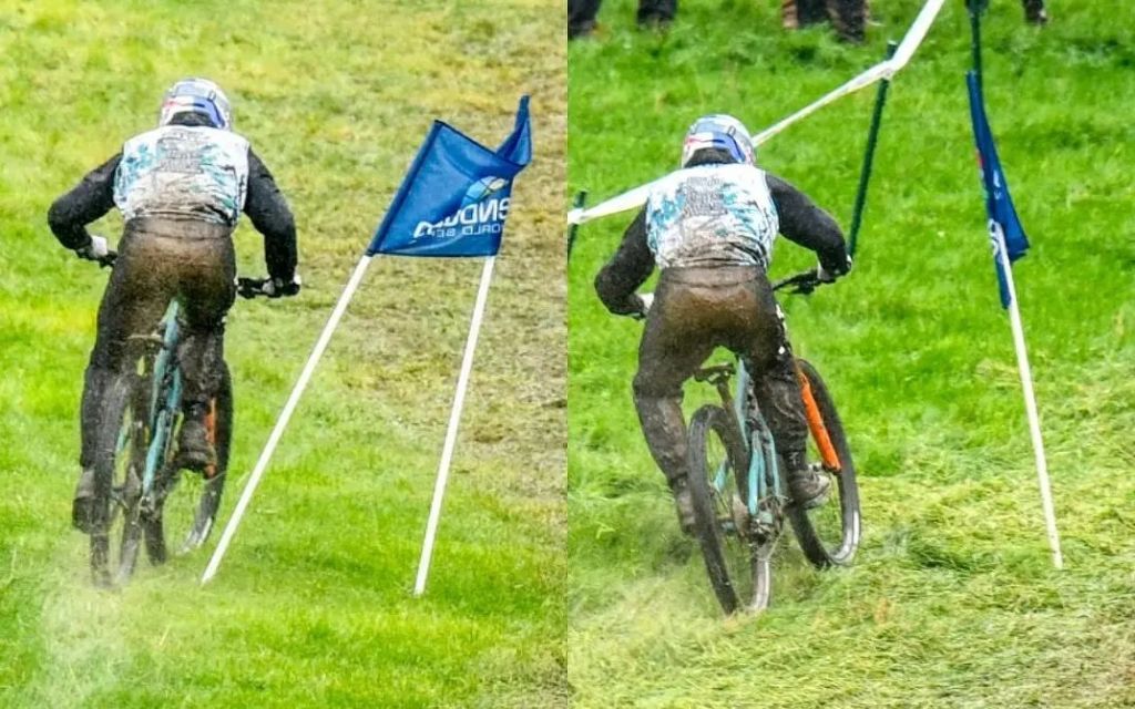 Mi opinión es que simplemente se cegaron, entraron en modo “visión túnel” buscando apretar y sacar centésimas donde no las hay, vieron una zona no encintada, opción de cerrar la curva y fueron a por ello. Para mí, fallo de alguien en el equipo por no recordarles la regla que está ahí clarísima y que el resto de corredores si respetaron. De hecho a Richie le saqué en una ráfaga completa y le pillé pasando por detrás de las banderas y al polaco le pillé en una historia. En ambos casos me quedé algo confundido porque estaba seguro que tenían que pasar entre las banderas, tipo ski, por lo que no me sorprendió que les sancionaran.