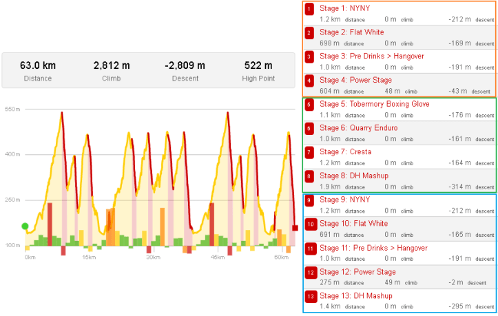 La carrera de ebikes, como viene siendo habitual, fueron 3 bucles en los que la categorías élite se les permite cambiar la batería en cada bucle, para un total de 63km y 2800m de subida repartidos en 13 tramos cronometrados. Tuvieron 2 Power Stage (de subida) en el primer (TC4) y tercer bucle (TC12), que curiosamente fueron justamente los 2 tramos que ganó Levi Batista que quedó 11no. Laura Charles si que ganó uno de los Power Stage, el TC4.