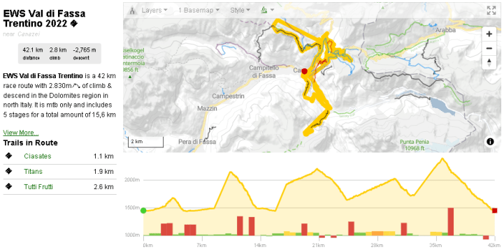 Finiquitada la 3ra carrera de la temporada 2022 de la Enduro World Series en Canazei, Italia. Carrera perfecta desde el punto de vista del terreno y la climatología, no llovió durante la carrera y una leve llovizna la noche anterior dejó el terreno perfecto. Los primeros en salir por la mañana pillaron alguna raíz resbaladiza pero según fue pasando el día mejoró mucho y ya para cuando bajaron las chicas élite y el top30 de los hombres el terreno estaba ideal.