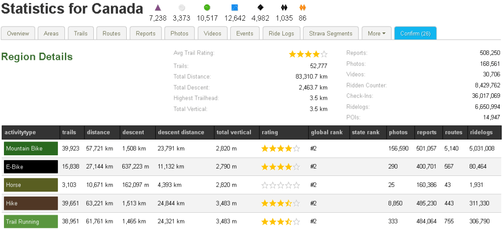 Cerramos un año espectacular para España en la plataforma Trailforks. Estamos en el 3er puesto global en cuanto al total de caminos solo por detrás de USA y Canadá. Pero nos hemos colocado 2do global en caminos específicos para MTB que incluyes pistas de acceso así como caminos secundarios (doubletrack o camino de carro) que tan importantes son para poder saber como llegar a un sendero y para que la herramienta Route Planner funcione correctamente.