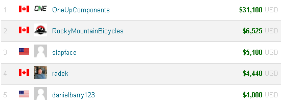 En la plataforma Trailforks existe la posibilidad de hacer donaciones directas a asociaciones que se encargan de trabajar en los senderos, promover el uso de los mismos y en general trabajar para que muchos puedan disfrutar de esta pasión que nos une a todos que es el mountainbike. Si miramos cuales son el top5 de donaciones del mundo vemos 2 marcas relacionadas con el mundo de la bici, ambas canadienses, OneUpComponents y Rocky Mountain. Si te vas a España a mirar las donaciones, todas son individuales.