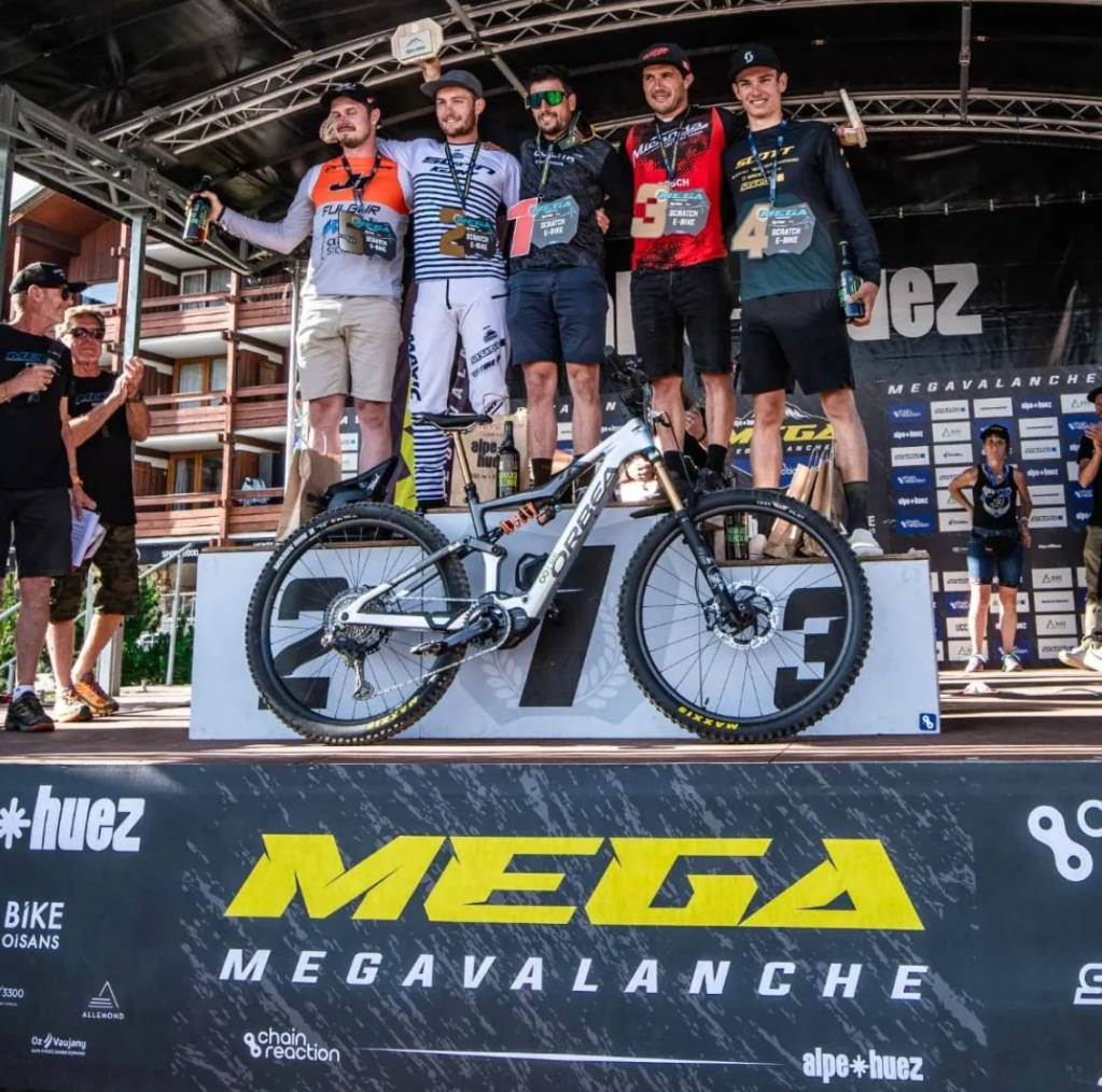 En eBikes la cosa quedó así. Ojo con el tiempo ganador comparado con el tiempo ganador en musculares. Damien Oton ganó en ebikes 42:07, en muscular Hugo Pigeon con 39:34, 2min y pico más rápido. Mover los kilos extras y en el pedaleo ayuda pero en las zonas muy rápidas donde si estas fuerte pasas de 25km/h, la ebike es un ancla. Y ojo que Damien Oton compite con la Orbea Rise que es muy ligera. Tercero quedó el portugués Emanuel Pombo, exPro de la copa del mundo de DH que hace ya varios años se ha especializado en las ebikes y es habitual en la EDR (exEWS) haciendo podios en varias carreras.