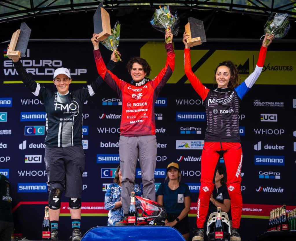 El viernes el clima fue fenomenal así que la carrera se llevó a cabo sin problema alguno y estaba en mano de los corredores dar lo mejor de sí mismos en Loudenvielle en un recorrido exigente con 5 tramos cronometrados siendo el más largo el TC3 con 5.2km y casi 800m de bajada. En féminas la francesa Isabeau Coudurier (Lapierre) pone el acelerador de cara al fin de temporada en la siguiente carrera en Les Gets tras ganar en Loudenvielle de manera contundente, ganando 4 de los 5 tramos y con una ventaja apabullante de 22.66s sobre el 2do puesto. Solo su compatriota Morgane Charre (Pivot) logró arrebartarle un tramo, justamente el último. La escosesa Ella Connolly (Cannondale) vuelve tras estar fuera de competición por un golpe en la cabeza y lo hace por todo lo alto quedando 3ra logrando dos segundos puestos en 2 tramos. Cerraron el top5 la británica Harriet Harnden (Trek) y la israelita Noga Korem que lleva un par de carreras sin equipo oficial corriendo con una Commencal.