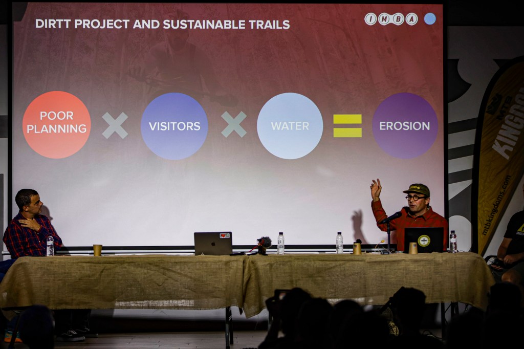 Por último Han Stoop de IMBa Europa en su presentación comentó sobre la necesidad de un cambio de paradigma para adaptar la consutrcción de senderos a las nuevas necesidades y requerimientos de los ciclistas de hoy en día así como para la sostenibilidad de esos senderos a largo plazo con la capacidad de poder acoger miles o decenas de miles de ciclistas con la menor erosión posible. Al final de este bloque esperaba que hubiera algo de debate al respecto de este peliagudo tema pero no fue el caso. Se pasó más tiempo comentado el tema de los seguros y la responsabilidad legal ante posibles accidentes, tema que es interesante y necesario pero nada que ver con el bloque de charlas que escuchamos durante 2h, vamos, el típico caso “todo muy bien, pero yo vengo hablar de mi libro”. Si interesa hablar del tema, haber presentado una charla y particpar en el evento como ponente, entonces todo el público podrá participar. Pero bueno, donde manda capitán no manda marinero.