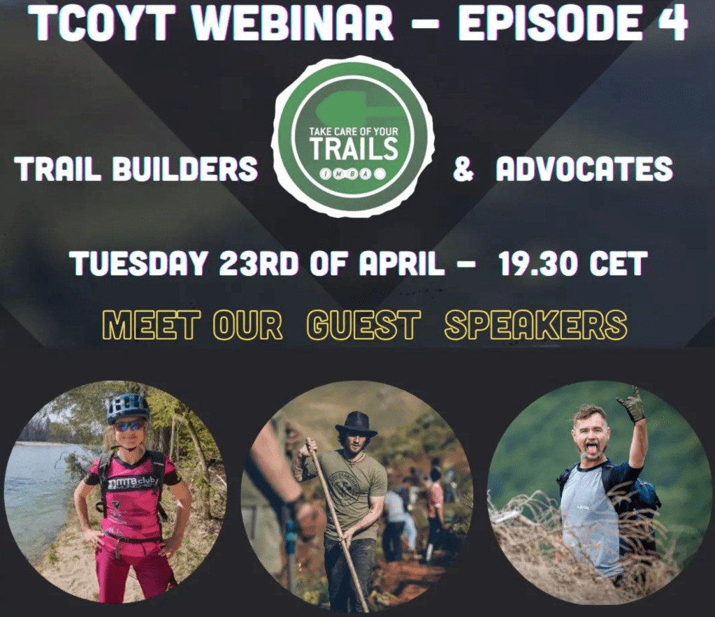 La semana próxima el martes a las 19:30h será el cuarto y último webinar que desde IMBA Europa ha ido presentando de cara a la campaña 2024. En este último tendré el honor de tomar parte como invitado y junto con la alemana Sarah Waelde, ganadora del Trail Advocate of the Year 2021 y Fanie Kok, director global del programa Specialized Soilsearching, hablaremos de la importancia que tiene involucrar a voluntarios, habilidades básicas necesarias para colaborar en un día de trabajo en los caminos y varias otras cuestiones que a todos seguro interesa.