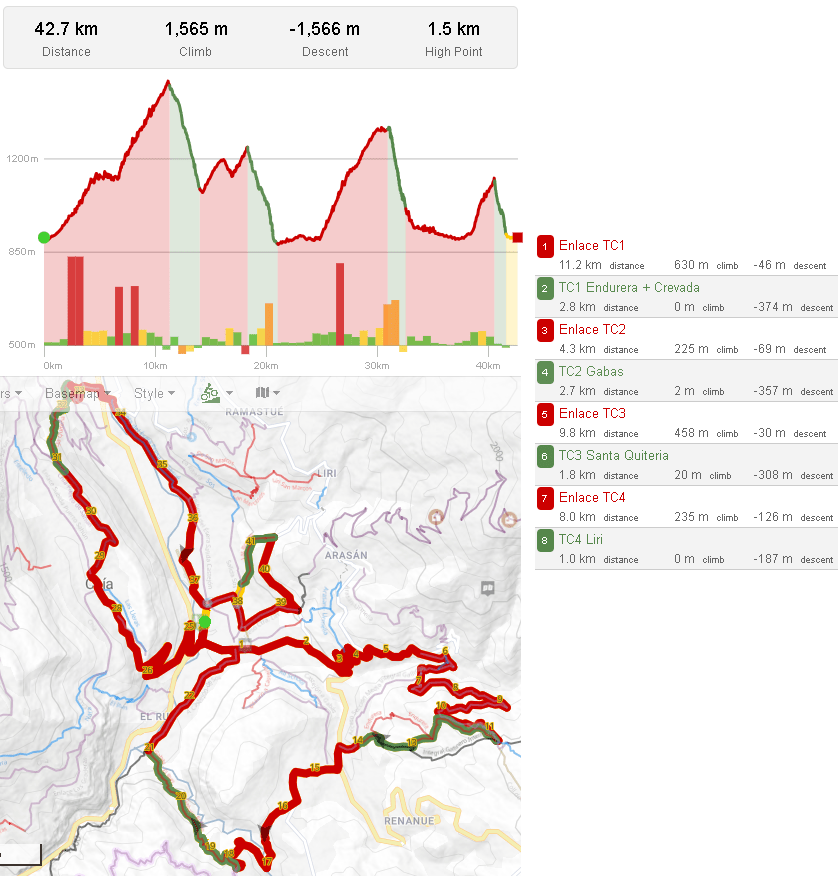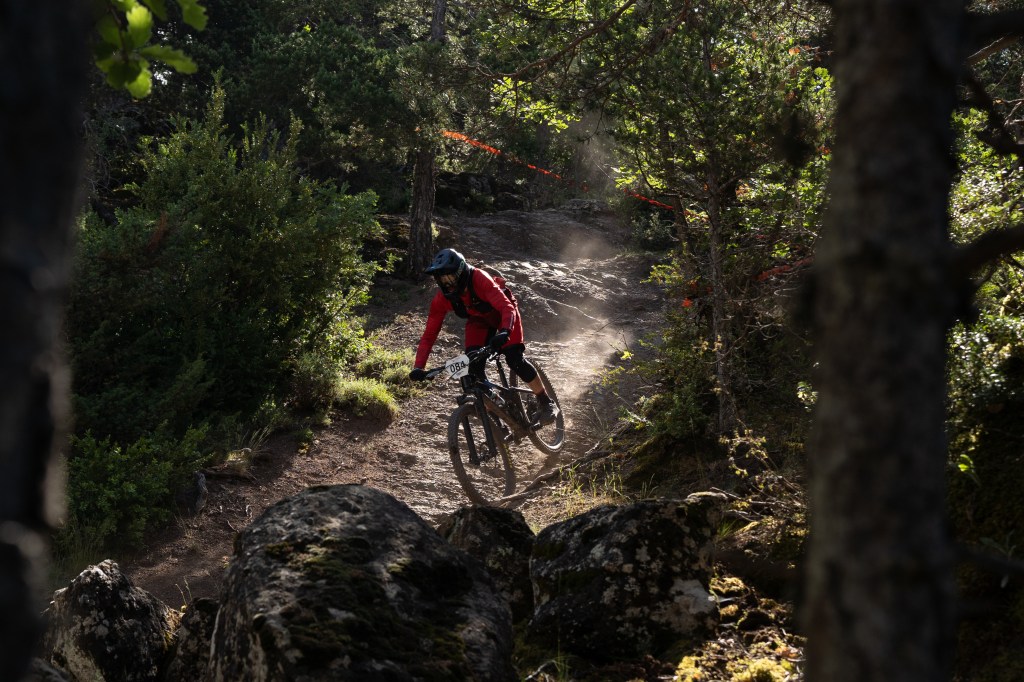 El día sería largo para todos, con una carrera por delante física y técnica, con un enlace inicial de 11km y un TC1 de casi 3km de largo y cerca de 400m de bajada donde podría fácilmente decidirse la carrera. El TC2 tampoco se quedaba muy lejos, con 2.7km y 357m de bajada no dejaría a nadie recuperarse rápido de ese TC1. El TC3 con poco menos de 2km y 300m de desnivel fue un constante batallar con piedras y zonas reviradas y técnicas. Y para finalizar, el TC4 Liri, puro flow directo a meta.