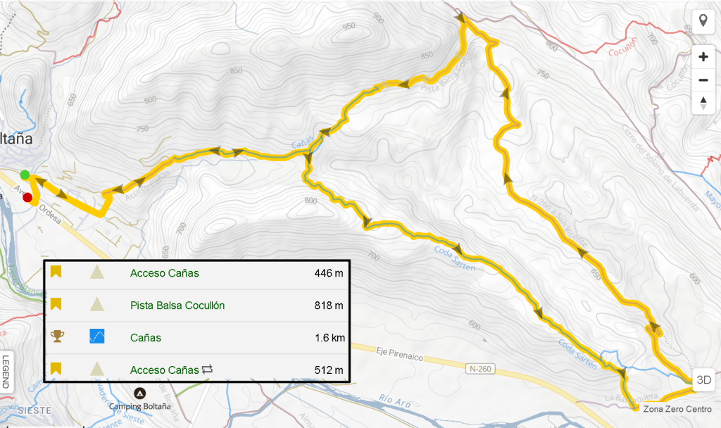 El recorrido fue básicamente salir desde Boltaña, subir “Las Cañas” que da acceso a la famosa “Coda Sartén” que se uso en las enduro world series en el 2018, subir por la pista de acceso San Vicente y bajar por Las Cañas de vuelta a Boltaña.
