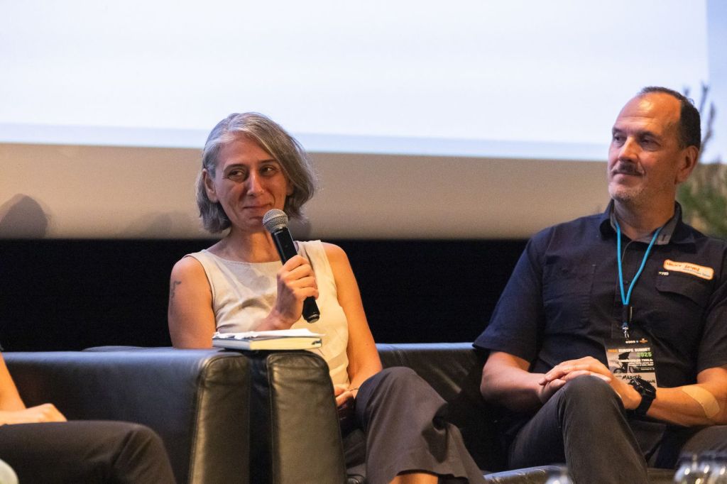 Tras una pausa para un café e intercambiar opiniones, comentarios, hacer comunidad, tocaban las “breakout sessions”. Al igual que en el primer día habían varias a la vez. Me decanté por la charla “Predicar con el ejemplo: estrategias efectivas de proyectos MTB en España y su valor para la industria ciclista” en la que participaron Emilio Tamayo (Pura Esencia Villanueva del Rosario, Málaga) y representantes de Bikeabadesses, otro proyecto reciente apoyado por un club local para recuperar caminos en la zona de Ripoll. Ambos presentaron sus casos de éxito en regiones rurales que han apostado por el MTB como herramienta para atraer visitantes, diversificar su economía y fijar población. Tras la charla tuvimos un debate interesante con los participantes, haciendo preguntas varias y comentando sobre los retos que tenemos por delante, centrandonos sobre en los objetivos que se plantean a futuro, la titularidad de los caminos y la parte económica que implica poder continuar con esos trabajos.